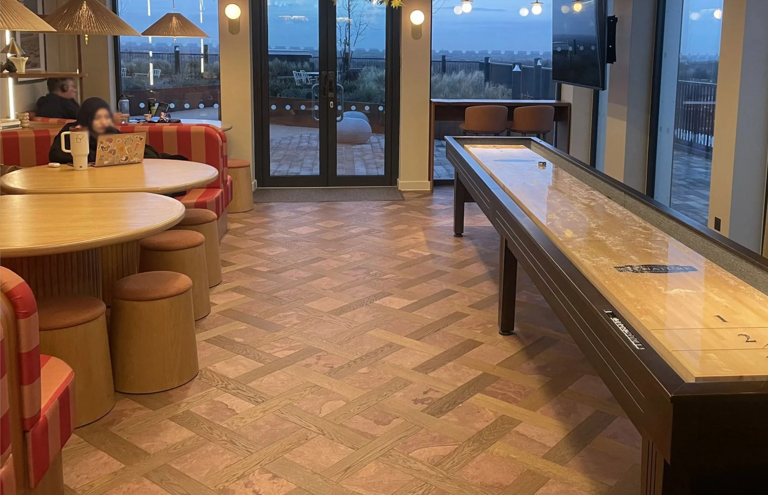 Arbour is a purpose-built rental development that includes on-site co-working space for residents. Inspired by the surrounding landscape, this clever design by the team at Kibre gently blurs the line between indoors and out. A bespoke basket weave was used in the main co-working lounge with basket & mansion weave in the quieter focus and meeting zones — This clever flooring design inspires calm and creativity with its premium custom aesthetic.