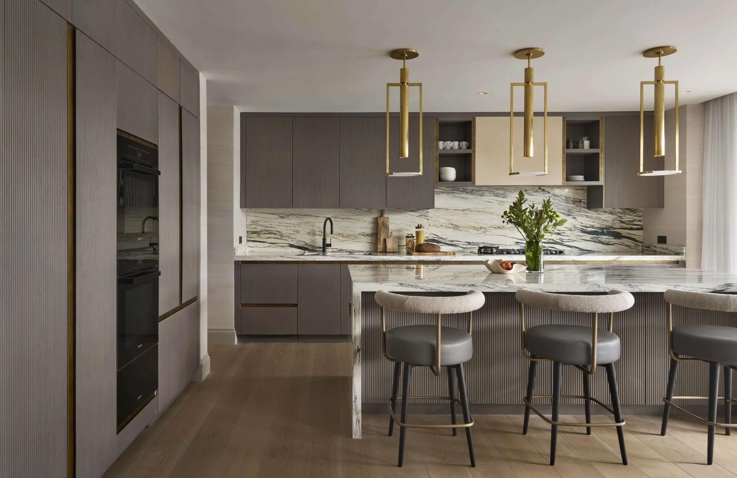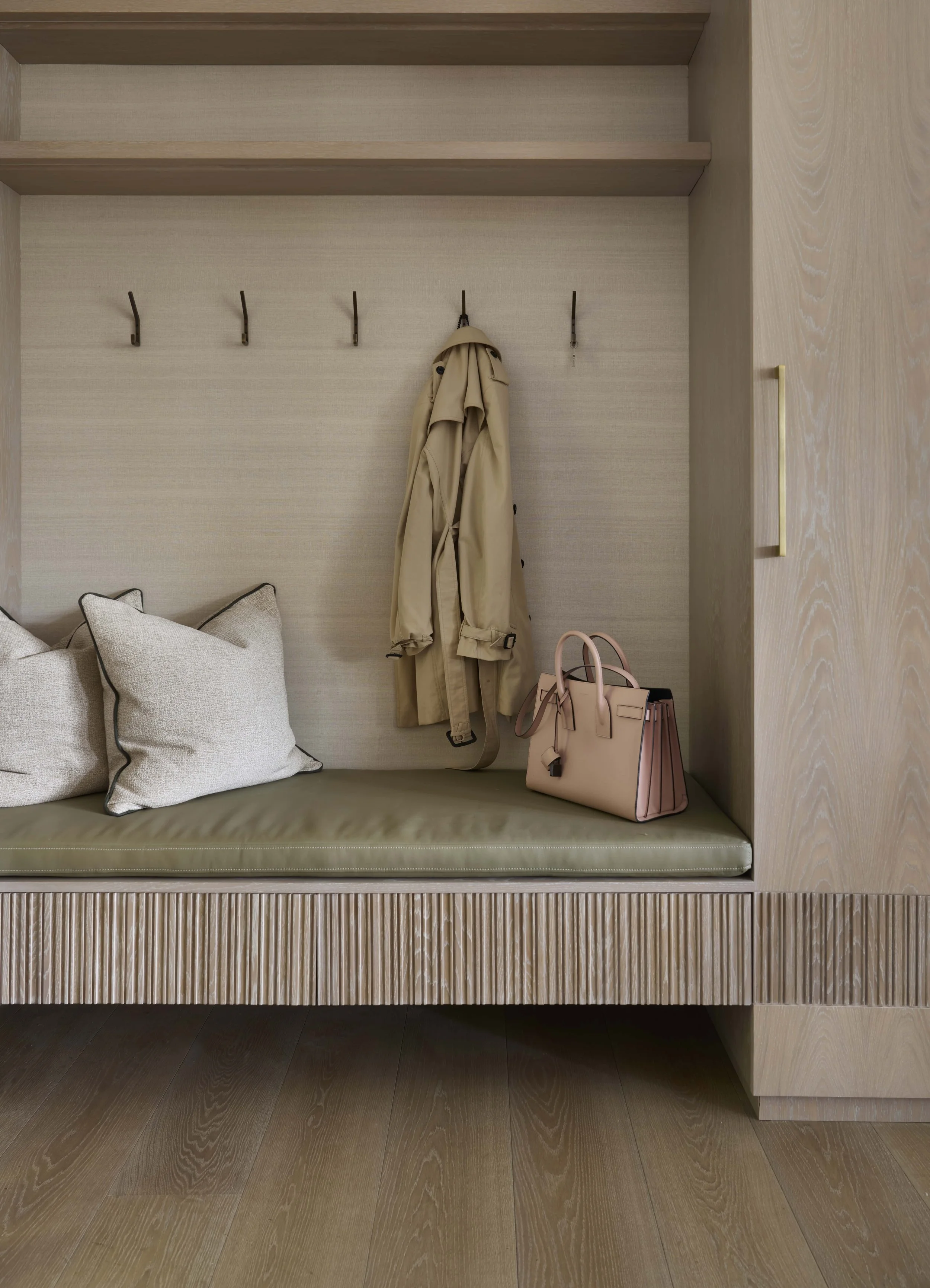 Soft, layered fabrics, bespoke joinery, and curated furnishings build upon the flooring’s natural warmth. Every material choice - from the oak underfoot to the timber accents throughout - reinforces the designs language, rooted in simplicity, quality, and connection to nature.